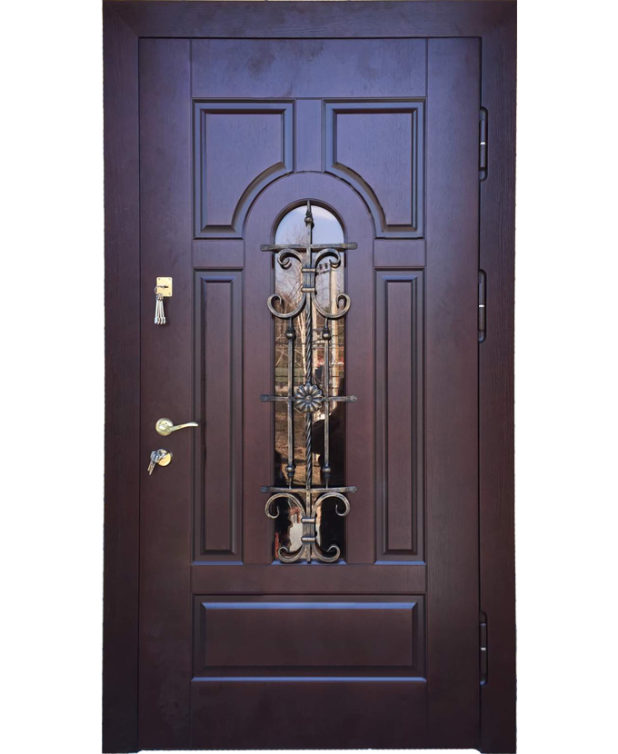 Входная железная дверь со стеклом и ковкой (с терморазрывом) CТ-2095